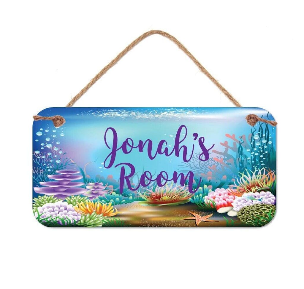 PERSONALIZED ROOM SIGN - Under the Sea Theme - Complete your space with a personalized under water scene sign. These signs can be customized for bedrooms, new babies, photo props, offices, cubicle, kitchen, dorm rooms, bathrooms, laundry rooms, outdoor areas and more.